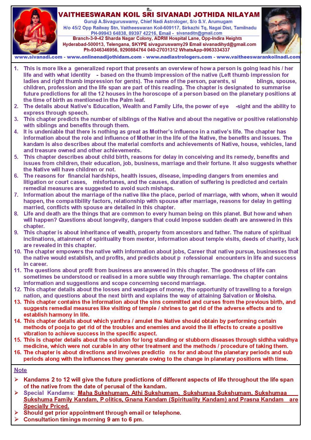 An experienced astrologer in your nearest branch will do the prediction one by one and provide you with a copy of your birth chart as well as a CD of the prediction and also send your prediction to your Email Address.